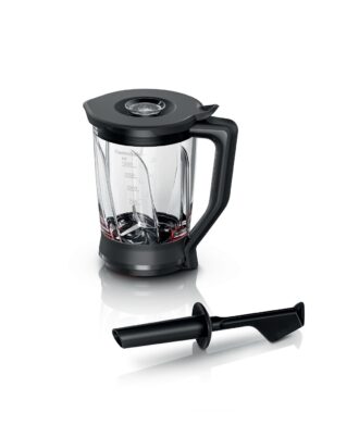 Jarra cristal Bosch MUZ9MX2, de alta calidad con tratamiento ThermoSafe para preparar sopas calientes y bebidas frías. Cuchillas desmontables para una fácil limpieza.