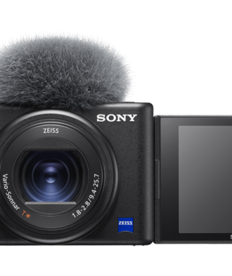 Cámara para videoblogs Sony con pantalla LCD de ángulo variable ideal para selfis. Micrófono direccional de 3 cápsulas con paravientos recoge tu voz claramente en exteriores