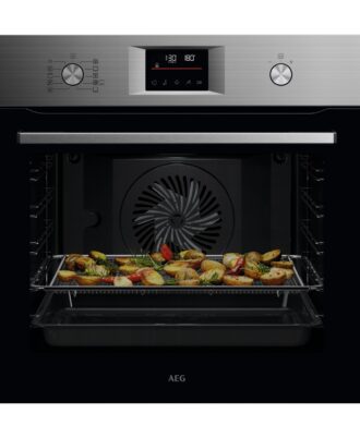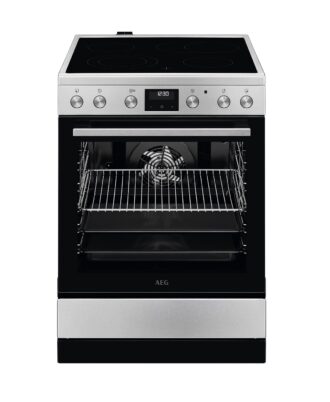 Cocina Vitrocerámica AEG de la Serie 6000 de 86 x 60 x 60 cm, vitrocerámica 4 zonas, Horno multifunción SteamBake, display digital, interior en esmalte negro, grill, horno con 7 funciones, carriles telescópicos en 1 nivel, capacidad XXL, acero inoxidable y negro