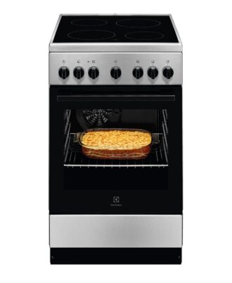 Cocina vitrocerámica Electrolux de 600 mm de la Serie 400, de 85 x 60 x 60 cm, placa vitrocerámica de 4 zonas, Horno multifunción con ventilador, con limpieza catalítica, grill, 5 funciones, cajón inferior para guardar utensilios de cocina, INOX