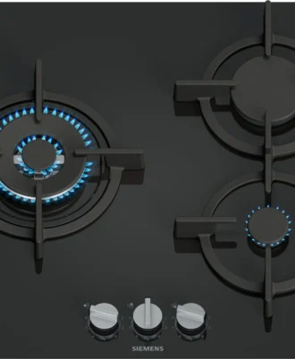 Placa de gas Siemens EP6A6CI10. Cristal templado negro. 60 cm. Mayor control y precisión en la potencia de la llama. Preparada para gas natural. Inyectores de gas butano incluidos.