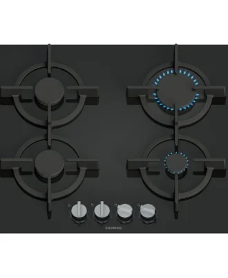 Placa de gas Siemens EP6A6PI10. 4 quemadores de gas. Cristal templado negro. 60 cm de ancho. Mayor control y precisión en la potencia de la llama. Preparada para gas natural. Inyectores de gas butano incluidos.