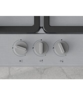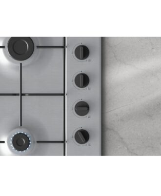 Placa de gas de 60 cm de ancho  Acero inoxidable 4 quemadores de gas: Mandos ergonómicos para un manejo sencillo y preciso. Autoencendido integrado en el mando. Parrilla doble con máxima estabilidad. Preparada para gas natural. Sistema de seguridad Gas Stop. Inyectores opcionales para gas butano incluidos