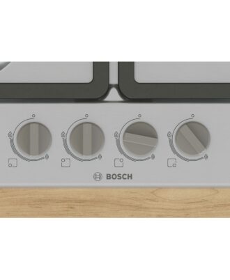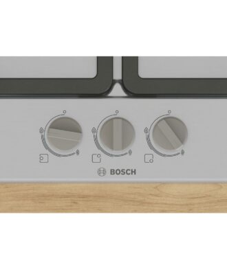 Placa de cocina Bosch de gas de 60 cm de ancho Acero inoxidable. Mandos ergonómicos en la parte frontal para un manejo fácil, sencillo y preciso. Preparada para gas natural. Sistema de seguridad Gas Stop. Inyectores opcionales para gas butano incluidos