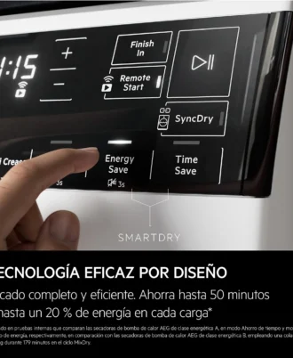 Lavadora secadora AEG LWR9816O1C Serie 9000 AbsoluteCare conectada de 10/6 kg y 1.600 rpm, display LED grande con sistemas AbsoluteCare®, PreciseLoad, programa Non-Stop 3 kilos en 3 horas, programa SpecialCare optimizado para cada tejido, motor Inverter, certificado Woolmark Blue.
