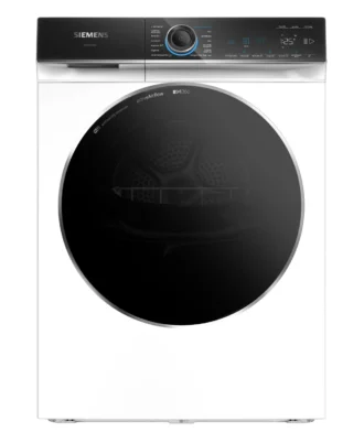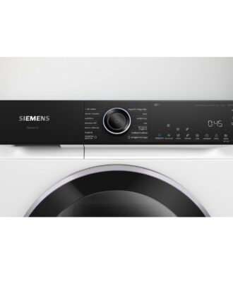 Secadora Siemens con bomba de calor. Blanco. Clase B. Capacidad: 9 kg. Display LED. Opción media carga. Condensador autolimpiante. Control electrónico de secado, sensor de humedad. Iluminación interior del tambor. Posibilidad de conexión a desagüe. Control remoto, Asistente de energía, Diagnóstico remoto, IntelligentDry