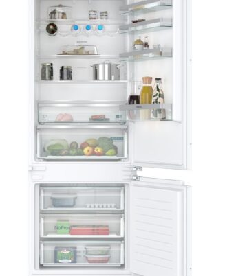 Frigorífico combi Siemens integrable 193.5 x 69.1 cm, Puerta deslizante. Clase E . Iluminación LED. Se conecta a tu móvil vía Home Connect. Tecnología noFrost en el congelador. Visualización de la temperatura mediante LED. Iluminación en el congelador.