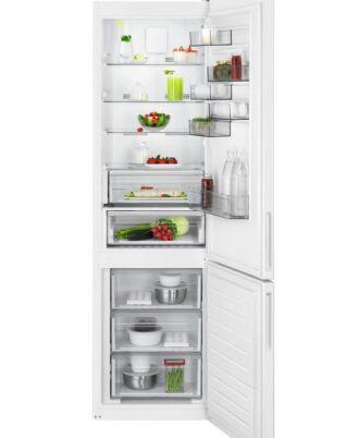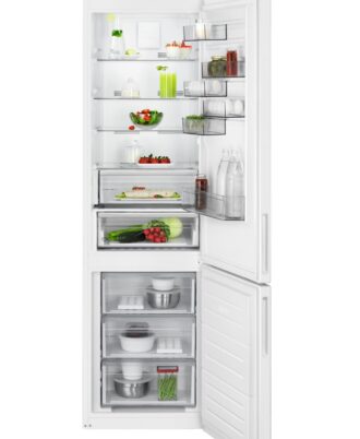 Frigorífico Combi AEG de la Serie 6000 Twintech MultiFlow de 2,01 mts y 60 cm de ancho, display LED en el interior, Cajón ExtraChill, Tirador integrado, luces LED, Puerta plana blanca.