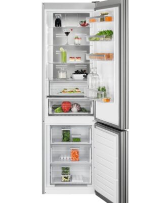 Frigorífico Combi AEG de la Serie 6000 Twintech MultiFlow de 2,01 mts y 60 cm de ancho, display LED en el interior, Cajón ExtraChill, Tirador integrado, luces LED, Puerta plana de aspecto INOX.