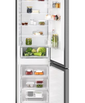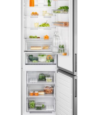 Frigorífico Combi AEG de la Serie 6000 Twintech MultiFlow de 2,02 mts y 60 cm de ancho, display LED en el interior, Cajón ExtraChill, Tirador integrado, luces LED, Puerta plana de aspecto INOX