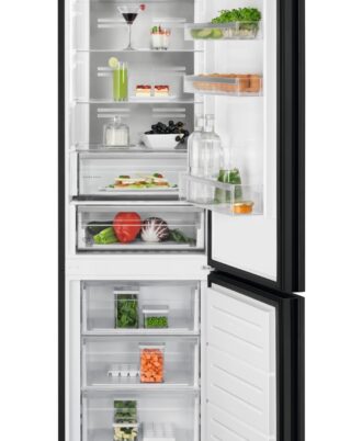 Frigorífico Combi AEG Serie 8000 Cooling 360° de 201 cm x 60 cm, Twintech No Frost con Metal Multiflow, display digital LED en el interior, cajón ExtraChill, luces LED, tirador integrado, puerta plana Cristal Negro.