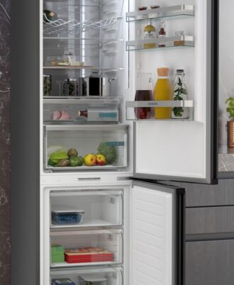 Frigorífico combinado Siemens Total noFrost. Diseño Acero negro antihuellas, 203 x 60 cm. Clase A. cajones 0°C. Tecnologia inverter. Panel trasero interior con diseño metalizado y MultiAirFlow.