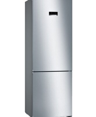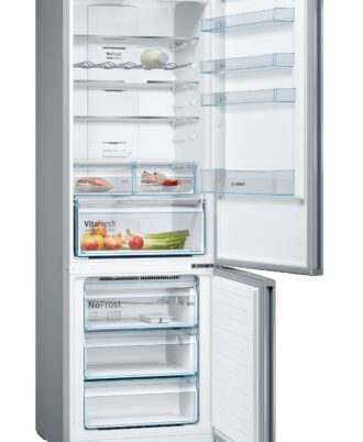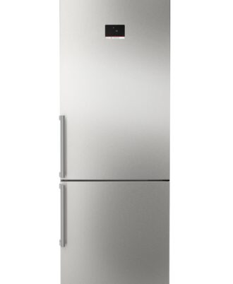 Frigorífico Bosch con total No Frost. Regulación independiente de temperatura en el frigorífico y congelador – 203 x 70 cm. Clase C. Motor inverter. Puertas acero antihuellas. Panel trasero interior con diseño blanco brillante. Tecnología total No Frost MultiAir Flow. Tirador de aluminio exterior.