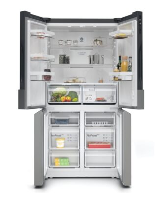 Frigorífico combi Multipuerta Bosch de libre instalación Puertas acero inox, 183 x 91 x 73.1 cm. control via app. Clase E Cajón 0ºC. Doble Multi Air-Flow. 6 cajones transparentes en el congelador.