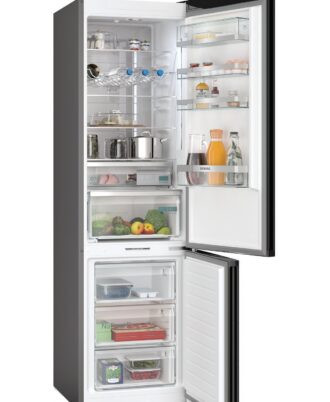 Frigorífico combi Bosch No Frost con cajón VitaFresh Plus. Clase C . 2 circuitos de frío independientes. Acabado en cristal, 203 x 60 cm, Negro. Iluminación interior LED. Tiradores laterales integrados.