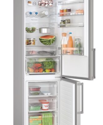 Frigorífico combi Bosch Puertas Acero Inoxidable, 203 x 60 cm. No Frost. Clase B, cajon 0°C. Doble Multi Air-Flow. Iluminación interior mediante LED. Tirador de aluminio exterior.