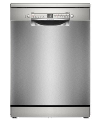Lavavajillas Bosch libre instalación y acero inoxidable. Clase C. Motor EcoSilence. 13 servicios. Display con indicación de tiempo restante. Home Connect: electrodomésticos con conectividad inteligente a internet para facilitar las tareas diarias en el hogar. Cesta superior regulable en altura, Cuba mixta de acero inoxidable con base Polinox.