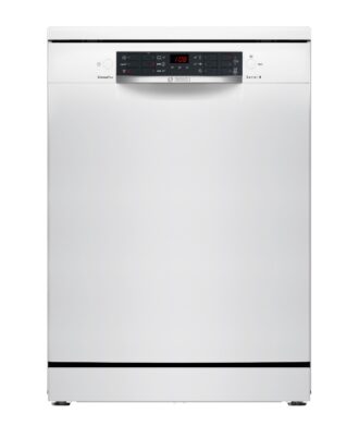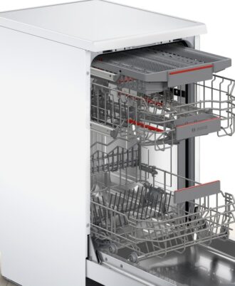 Lavavajillas de libre instalación Bosch, 45 cm, Blanco. Clase E. Motor EcoSilence. electrodoméstico con conectividad inteligente. Consumo de agua por ciclo: 8.9 litros. Capacidad: 10 servicios