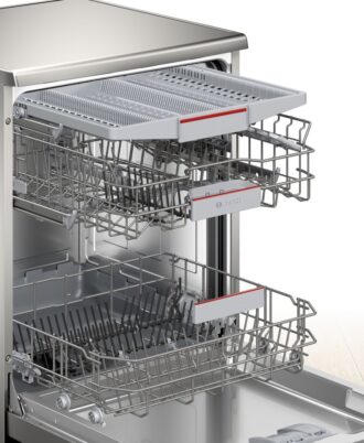Lavavajillas de libre instalación Bosch con 3ª bandeja, 45 cm, Acero inoxidable. Clase E. Motor EcoSilence. electrodoméstico con conectividad inteligente. Home Connect: conectado a tu electrodoméstico via app.