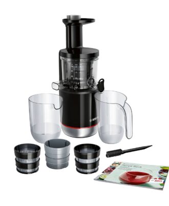 Extractor jugos baja revolución,150W, negro. Ajusta la cantidad de pulpa al gusto y disfruta del zumo saludable. Recetario incluido, para disfrutar de multitud de combinaciones saludables.