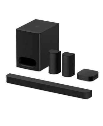 Sistema de cine en casa de 5.1 canales con Dolby Atmos® y DTS:X®. Potencia total de 1000 W para producir un sonido potente. Diálogos nítidos con el altavoz central y la tecnología de voz. Los altavoces frontales y traseros se conectan de forma inalámbrica para poder configurarlos fácilmente con menos cables. Control y configuración sencillos con el smartphone mediante la app BRAVIA Connect