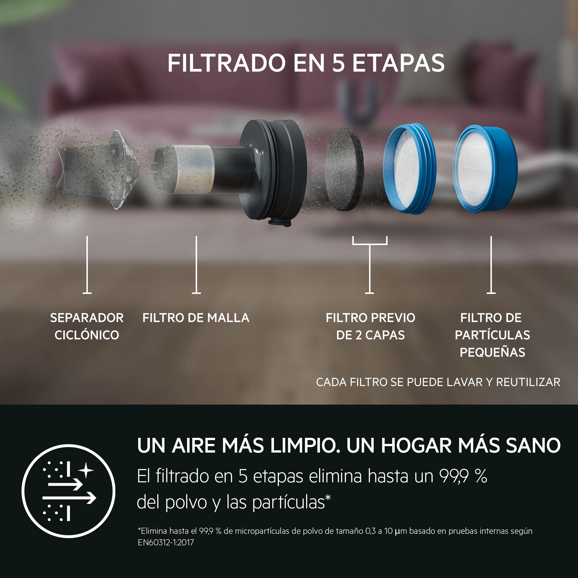 Aspiración de polvo en suelos duros IEC312: 100