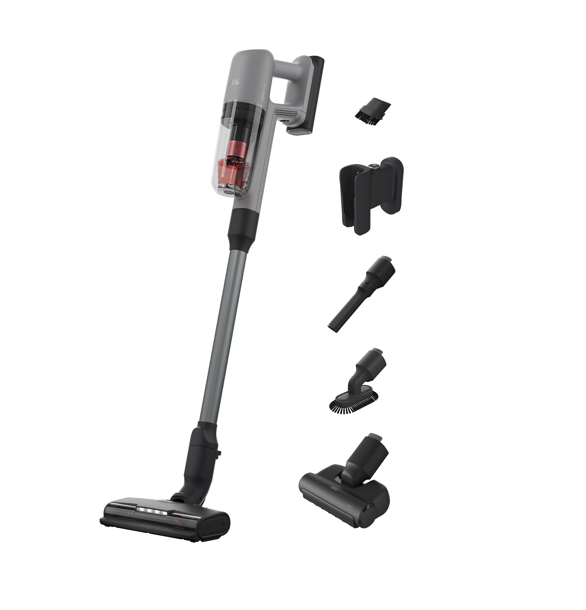 Aspirador sin cable AEG AP71AB14UG versátil de la Serie 7000 Animal de 14,4V, batería litio de alta densidad 4.0Ah / 57 w/h, 50 minutos de autonomía, 4 velocidades, cepillo UltimatePower Multi-surface, cepillo Pet Pro+, color gris, cepillo para muebles delicados, cepillo para polvo, y herramienta de acceso a espacios estrechos.