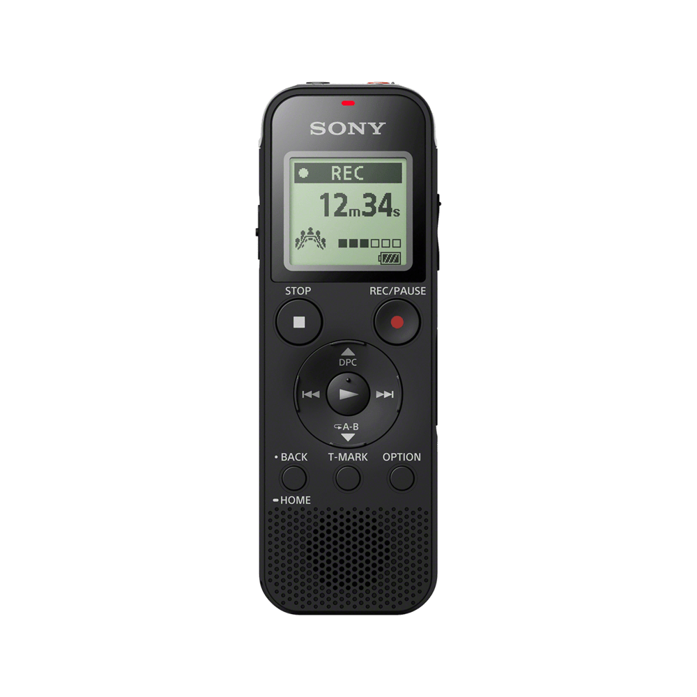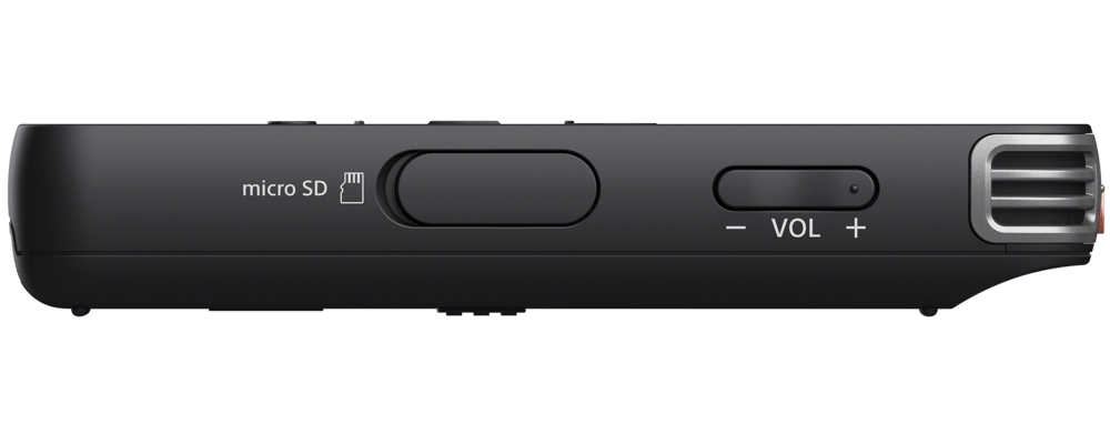 La ICD-PX470 incluye 4 GB de almacenamiento interno, lo que permite grabar un máximo de 59 h 35 m en estéreo en mp3 a 128 kbps. Puedes ampliar tu capacidad de memoria hasta 32 GB de memoria adicional con una tarjeta micro SD, que equivale a 536 horas de grabación (tarjeta micro SD de 32 GB, mp3, 128 kbps).