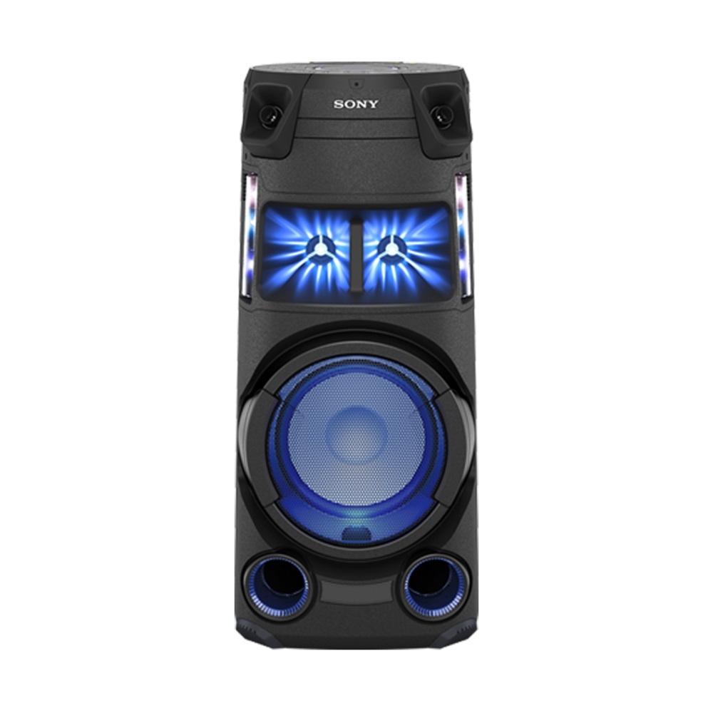 Los dos tweeter en forma de cuerno de alta eficiencia de la parte frontal del MHC-V43D amplían el sonido de escenario y aumentan la presión acústica hacia arriba, para que tu música llegue más lejos en cualquier dirección.