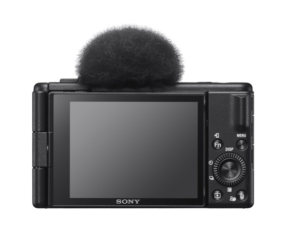 Cámara para videoblogs Sony con pantalla LCD de ángulo variable ideal para selfis. Micrófono direccional de 3 cápsulas con paravientos recoge tu voz claramente en exteriores