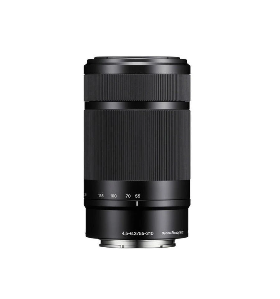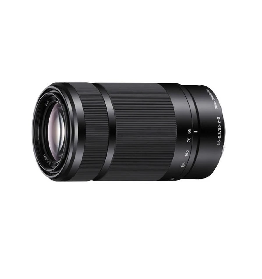 Objetivo Sony SEL55210B de zoom telescópico de 3,8x. APS-C, montura tipo E. Estabilización de imagen SteadyShot. Enfoque automático preciso y silencioso con fotos y vídeos. Óptica de alto rendimiento y acabado en aleación de aluminio. Distancia focal equivalente a 35 mm: 82,5–315 mm