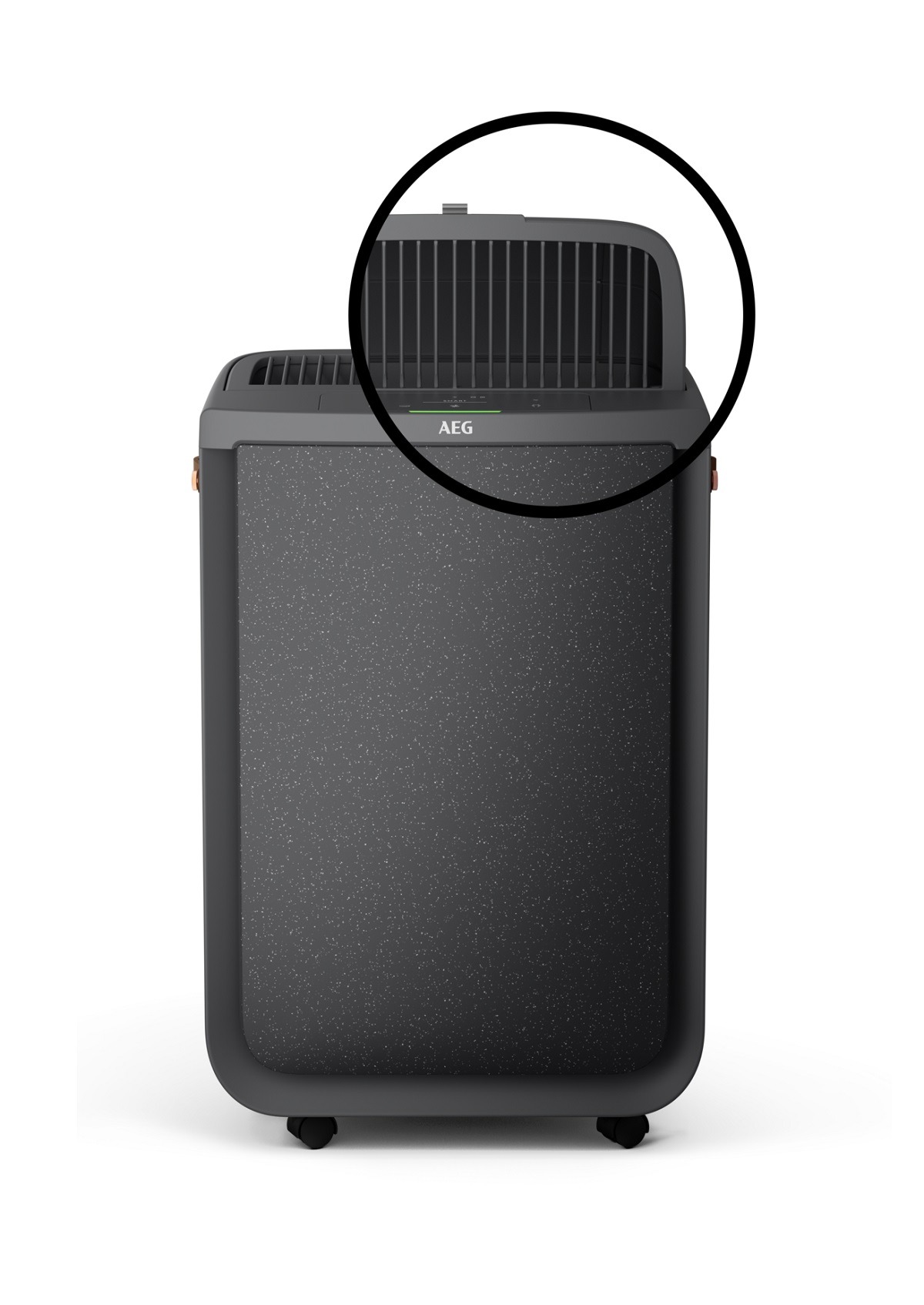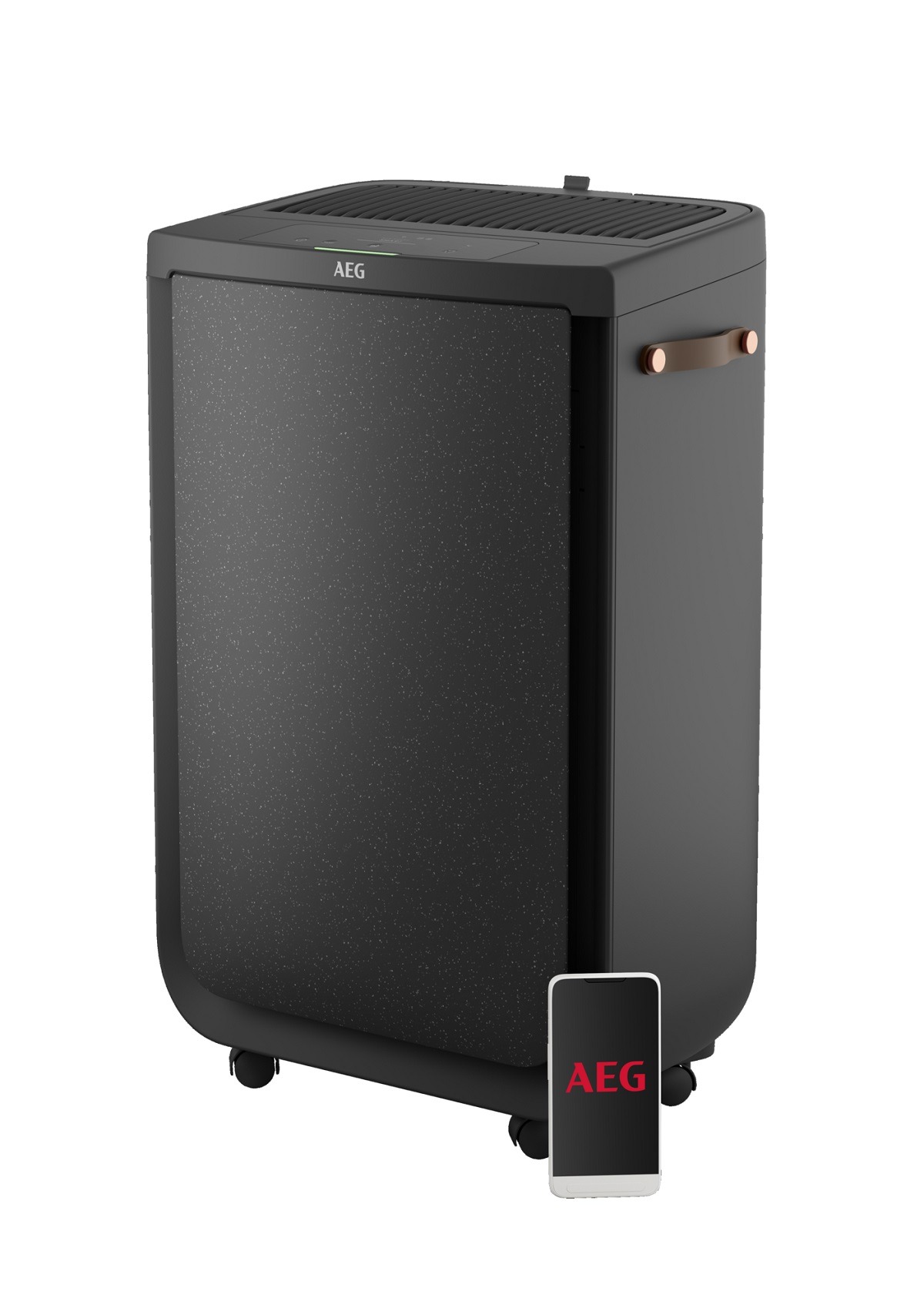 Purificador + Ventilador, Área 70 m2 (Boverket), 330 CADR Max (AHAM), purificación combinada con ventilador que alcanza hasta 6 metros y ráfagas oscilantes con 3 opciones disponibles: ángulo estrecho, ángulo ancho, aleatorio (brisa natural), Sensores de PM, TVOC, temperatura, humedad y luminosidad, Filtros con RFID, Rumorosidad máx 52 dB(A), Modo Silencioso 20 dB(A), 5 velocidades, Smart Mode, App y touch UI, frontal tela, mango cuero, Gris Oscuro.
