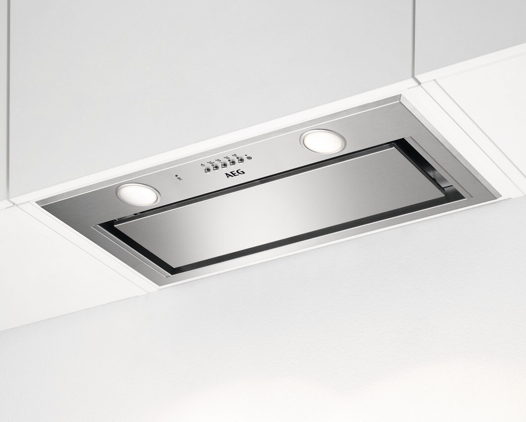 Grupo Filtrante AEG de 54 cm con sistema «Hob2Hood» de sincronización automática con una placa compatible, Control Electrónico, 3 niveles de potencia + Intensivo, Potencia máxima de 700 m3/h, Nivel de ruido de 67 dB(A), Luces LED, INOX, Clase A