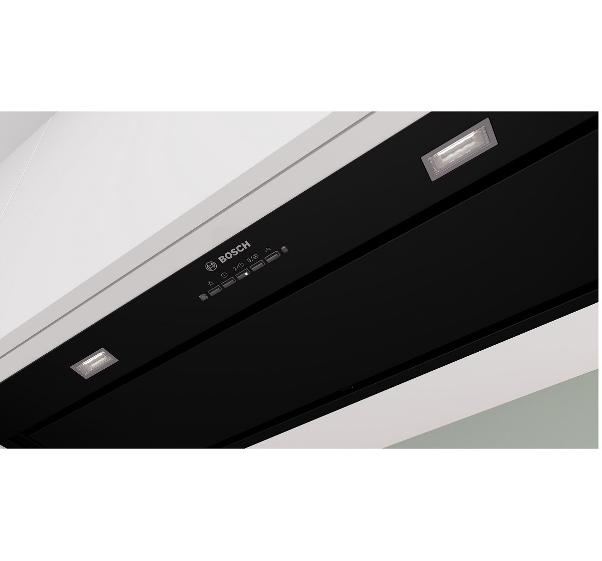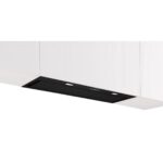 Módulo de integración negro BOSCH. Ancho 86 cm. Posibilidad de recirulación. Nivel de extracción maximo 820 m3/h; nivel de ruido 68 dB Desconexión automática temporizada. Control electrónico iluminado con indicadores LED. Indicador electrónico de saturación de filtros antigrasa.