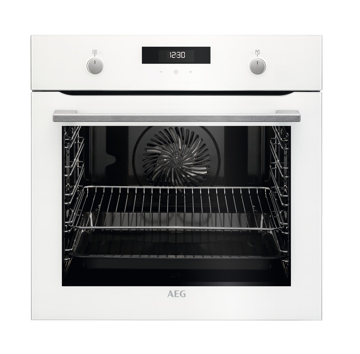 Horno BEK435120W SurroundCook «WhiteLine» con sistema de limpieza «Aqua Clean» y 9 funciones, Mandos escamoteables con pantalla táctil, Carriles telescópicos en 1 nivel, Blanco, Clase A+