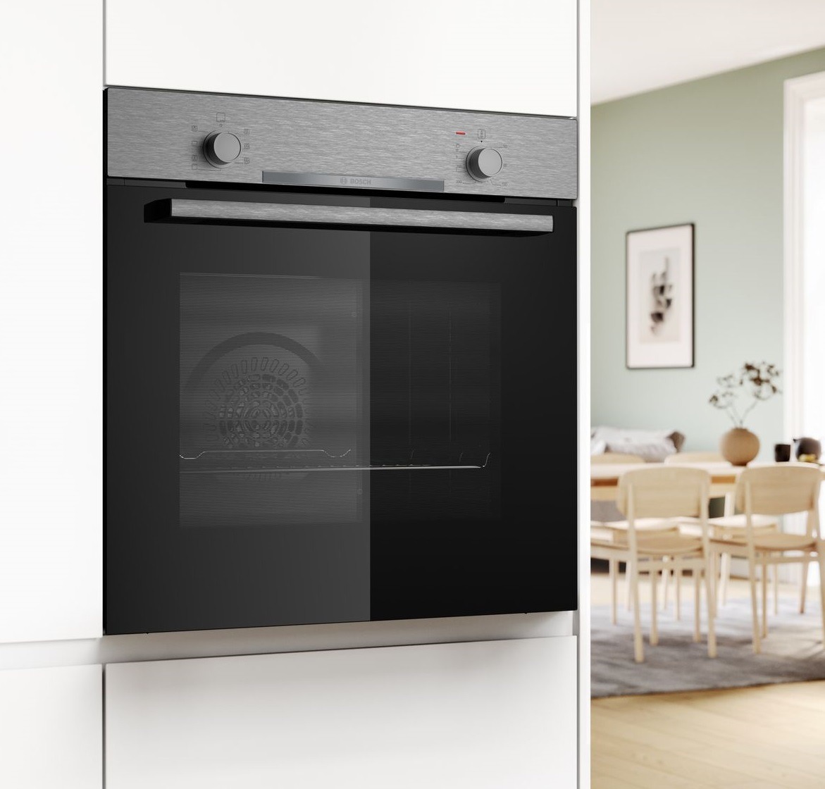 Horno HBA510BR4 multifunción de 60 cm. Cristal negro con acero inoxidable.
