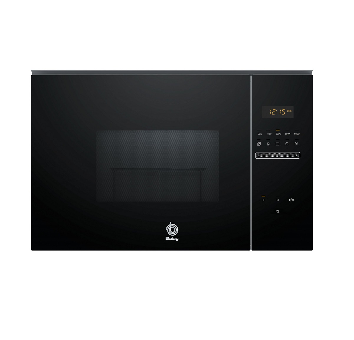 Microondas Serie Cristal Negro Balay de 60cm. 20 litros, calentar, descongelar Apertura lateral izquierda. 800W. Asistente de limpieza Aqualisis. Interior de acero inoxidable. Iluminación interior LED.