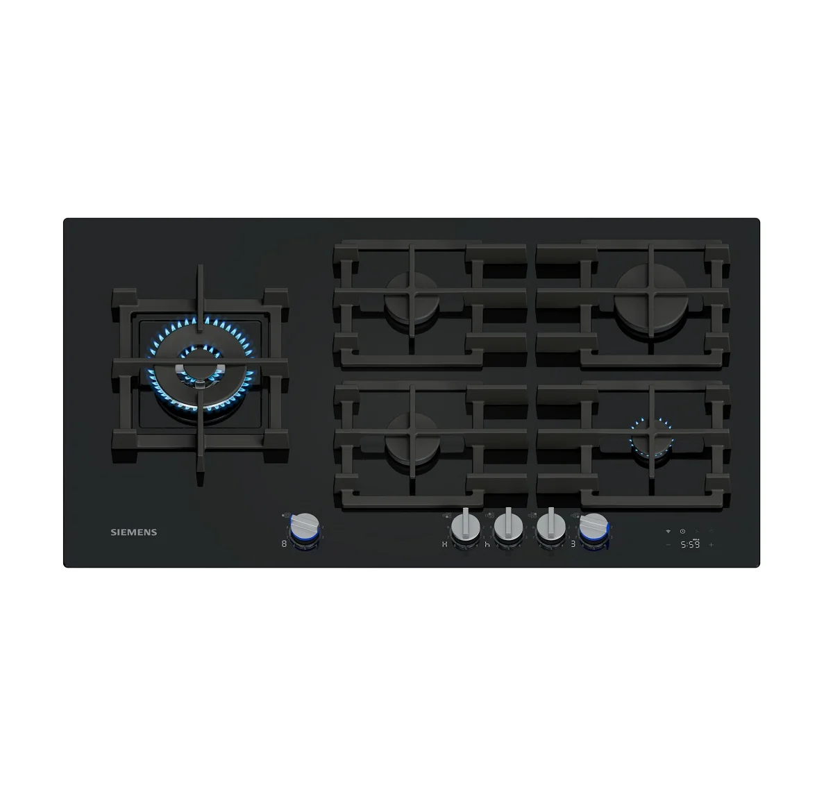 Placa de gas Siemens ER9A6SH40, 90 cm, Vidrio templado, Negro.