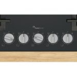 Placa de gas con un preciso control de la llama y fácil limpieza gracias a los mandos metálicos extraíbles y sus parrillas de hierro fundido lavables en el lavavajillas.