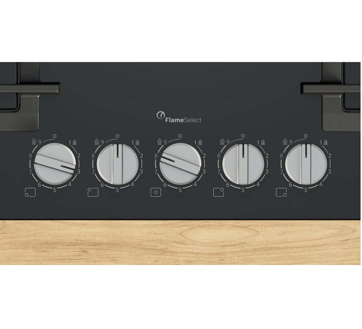 Las placas de gas destacan por su gran versatilidad a la hora de ajustar la potencia de cocción. Aunque no siempre es fácil seleccionar la intensidad exacta de la llama que necesitas. Con FlameSelect, puedes elegir con precisión la intensidad de la llama entre nueve niveles para obtener siempre resultados perfectos. (El diseño del producto puede diferir de la imagen)