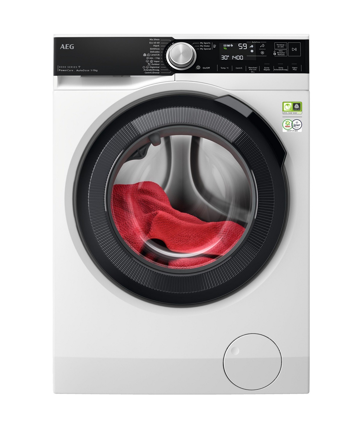 - Programas de lavado:Programa intenso PowerClean en 59 min, Eco a 40°-60°, Algodón , Sintéticos, Delicados, Lana, 3 kg en 20 minutos, Vapor, Outdoor, Higiene, Aclarado , Centrifugado/Drenaje