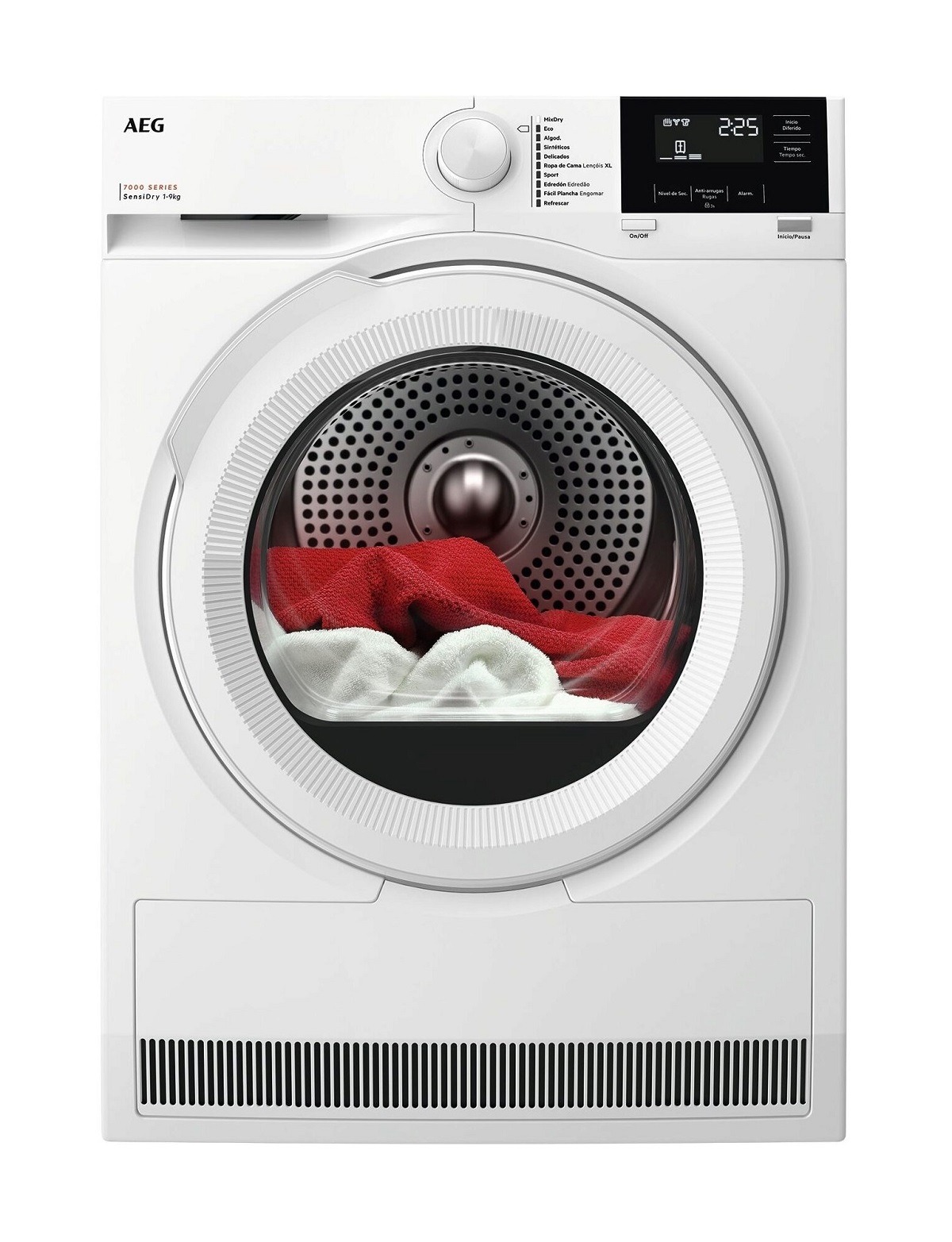 - Indicadores status secado: Secado, Enfriado, Fácil plancha, Seco armario, Secado extra, Anti-arrugas / fin