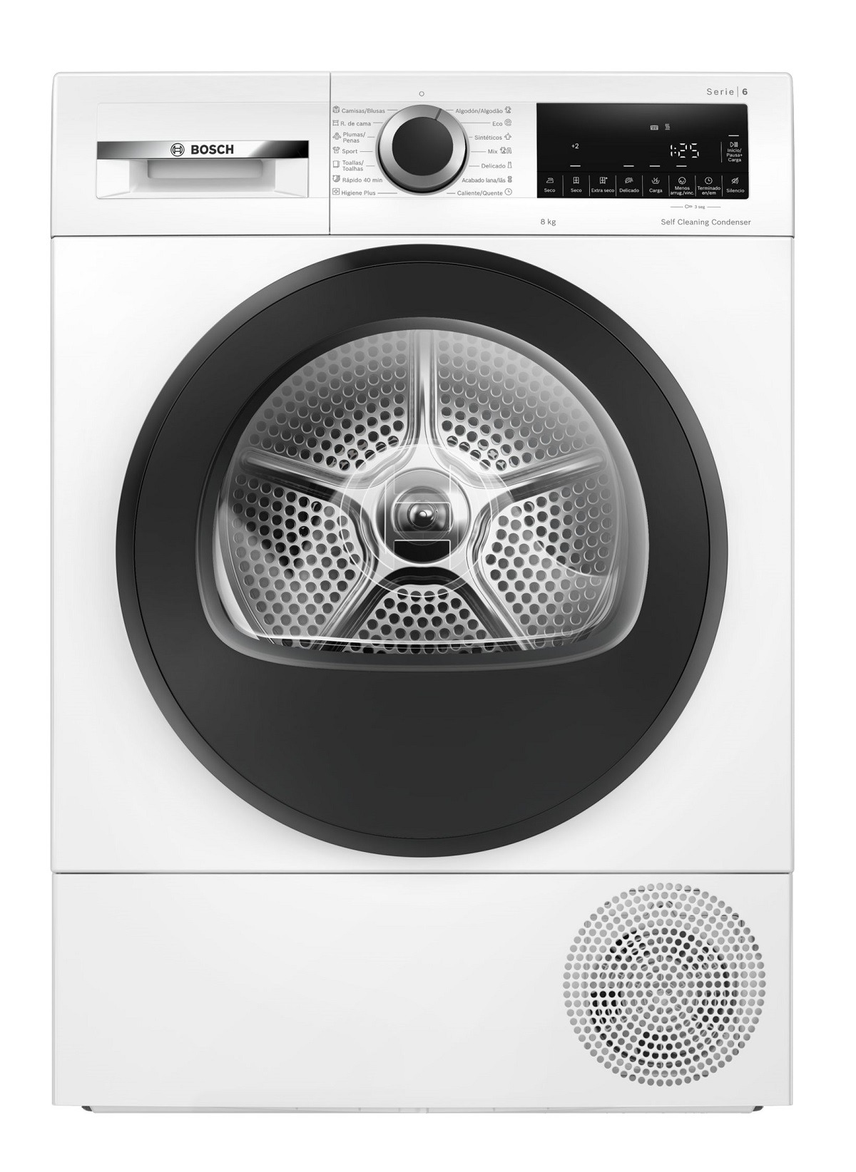 | Funciones: seco para planchar, seco para guardar, extra seco para guardar, Fácil plancha, Secado delicado, Señal acústica fin de programa, Función Pausa+Carga para prendas olvidadas, Terminado 24 h |