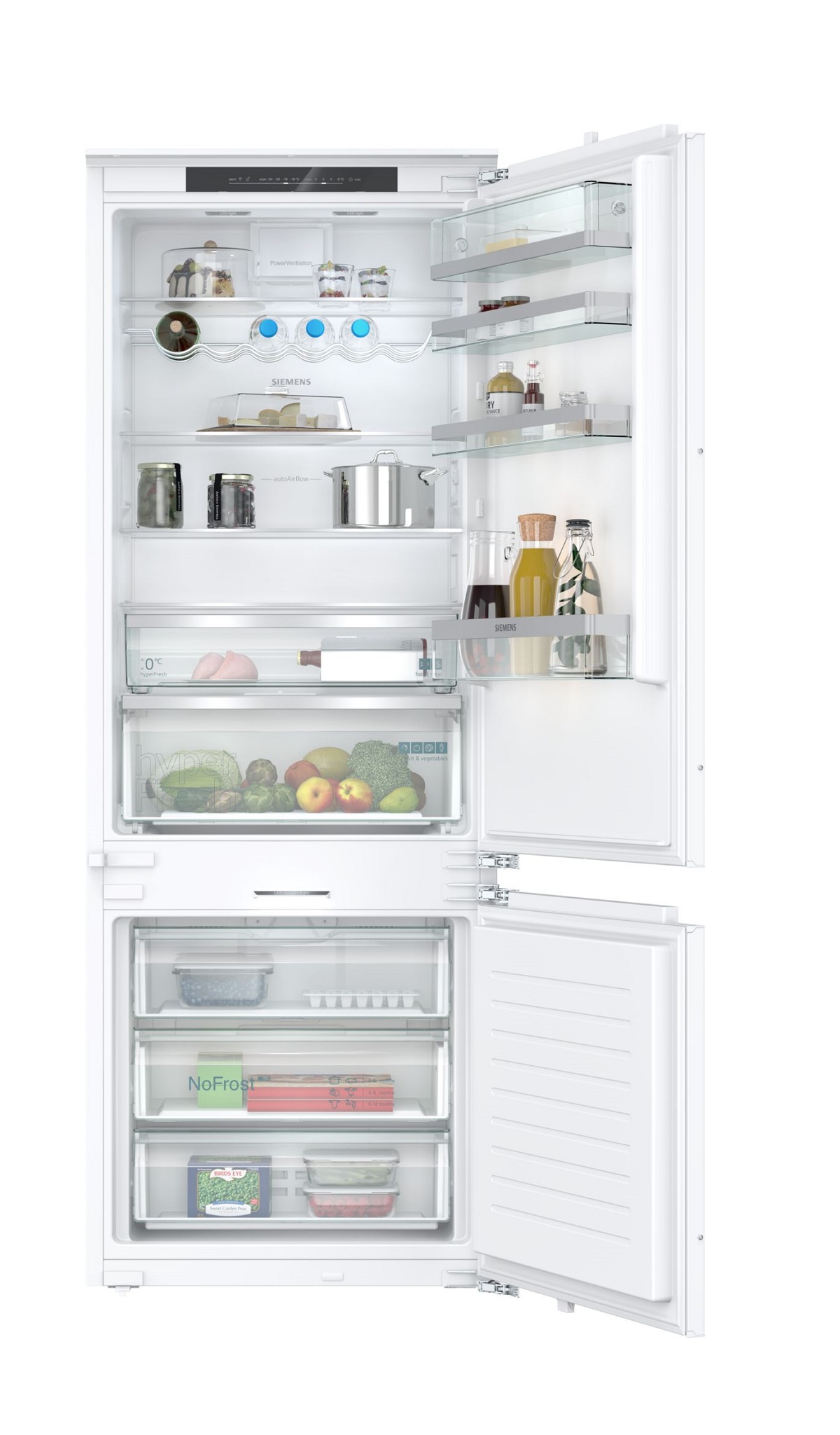 Frigorífico combinado integrado con un 45 % de espacio adicional y zona hyperFresh <0 °C>: crea condiciones de almacenamiento ideales para todos tus alimentos y con capacidad XXL para toda tu compra semanal.