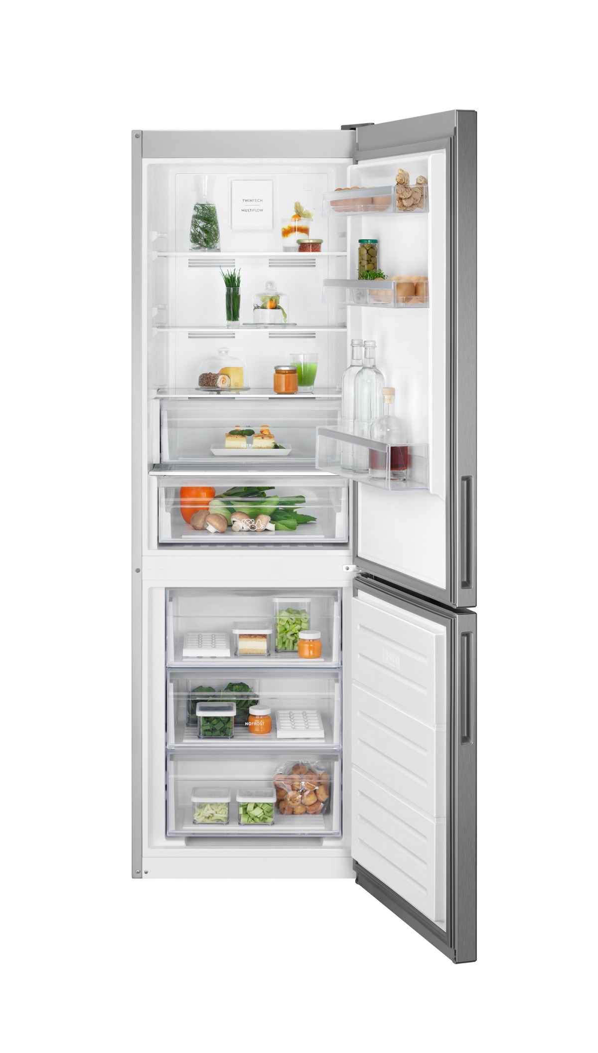 Frigorífico Combi LNT6ME32U2 Serie 600 TwinTech® No Frost de 186 cm x 60 cm, TwinTech No Frost Multiflow, display digital LED en el interior, cajón ExtraChill, Luces LED, tirador integrado, puerta plana, aspecto INOX
