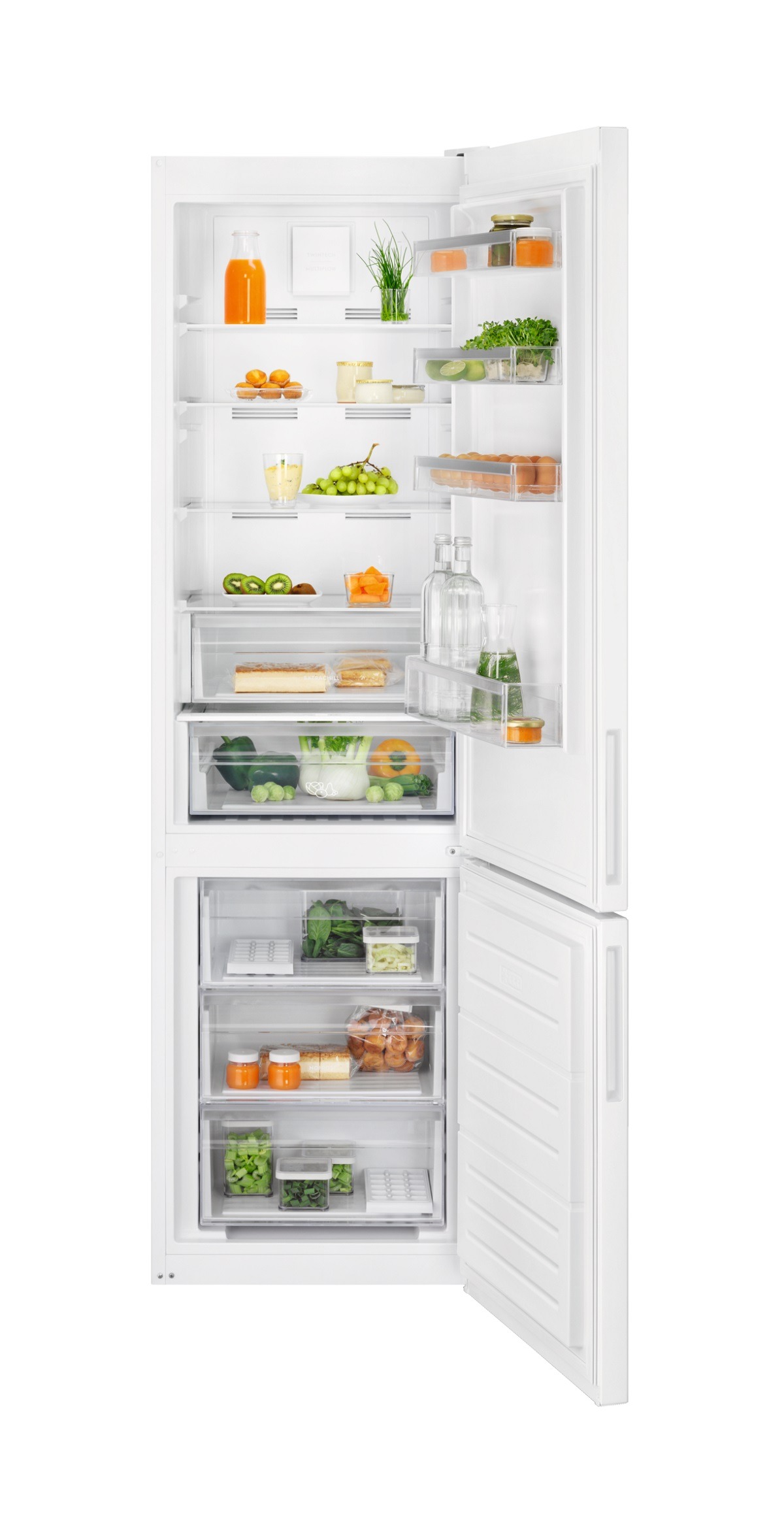 Frigorífico Combi LNT6ME36W2 TwinTech® No Frost de 201 cm x 60 cm, TwinTech No Frost Multiflow, display digital LED en el interior, cajón ExtraChill, Luces LED, tirador integrado, puerta plana, blanco