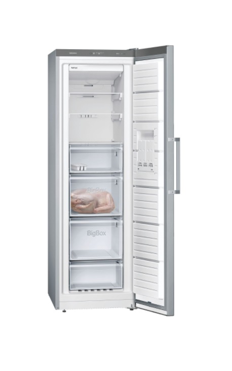 Grandes piezas de carne, cajas de pizzas apiladas o recipientes altos – para alimentos especialmente grandes se necesita más espacio. El cajón bigBox proporciona espacio suficiente para colocar y apilar todo lo que necesites. Y cuando se requiera aún más espacio, los cajones y las bandejas pueden retirarse fácilmente del congelador para tener todo el espacio a tu disposición.