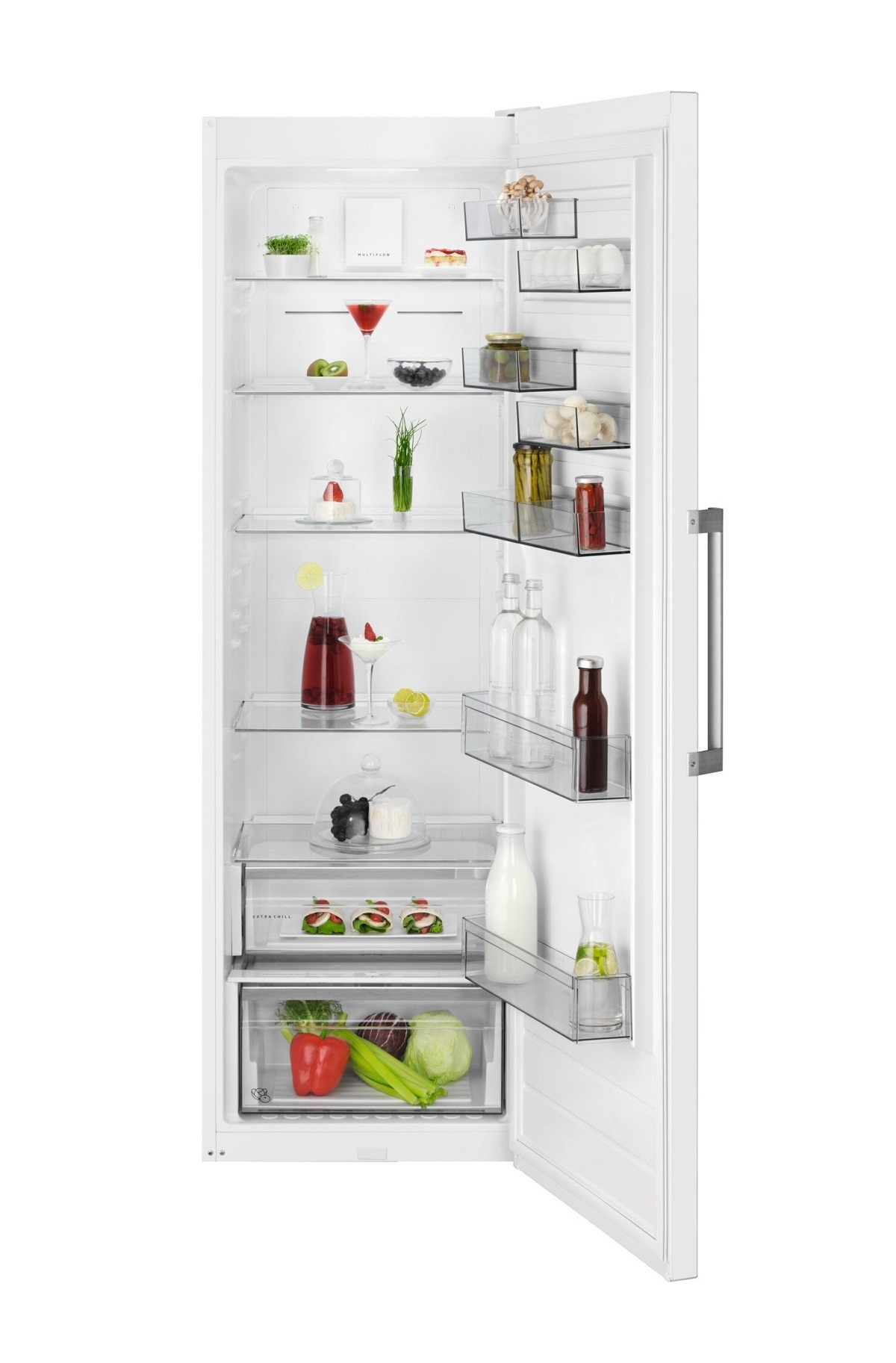 Frigorífico de una puerta RKB638E5MW CustomFlex MultiFlow de la gama Flexi con Display LED en puerta, Luces LED, Tirador de vertical, Puerta plana Blanca.