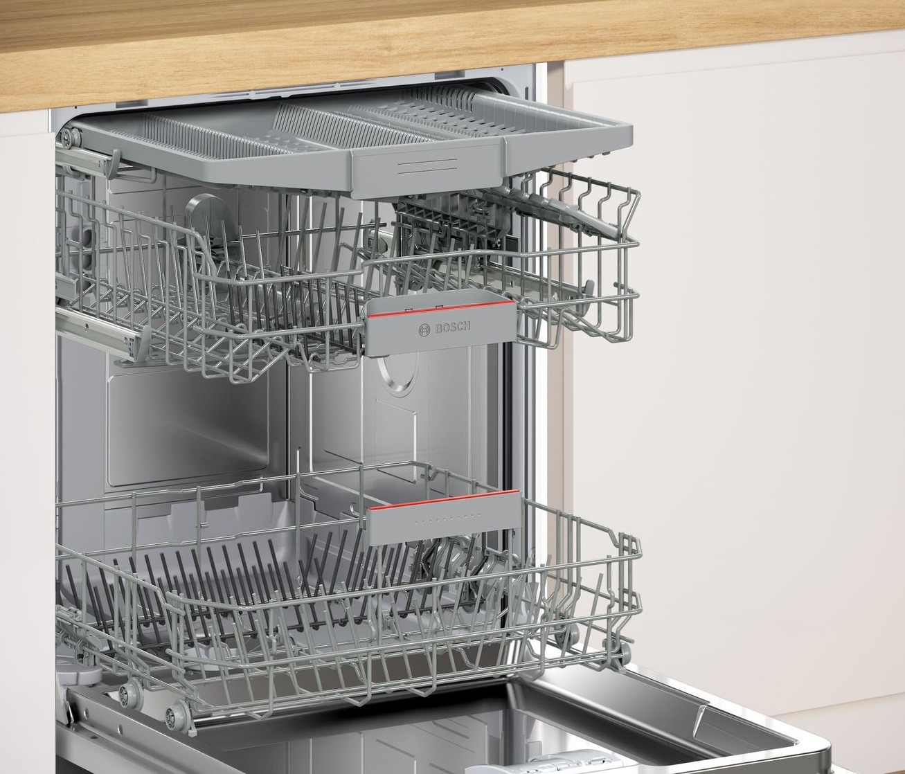 Flexibilidad en el interior de tu lavavajillas para una mayor comodidad, y conectado permanentemente a él mediante la app Home Connect.