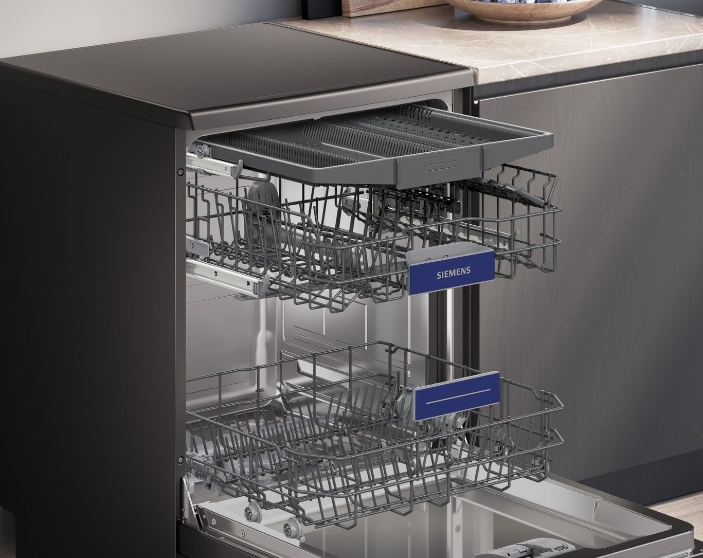 Lavavajillas SN23EC03ME de libre instalación. Acero negro cepillado antihuellas